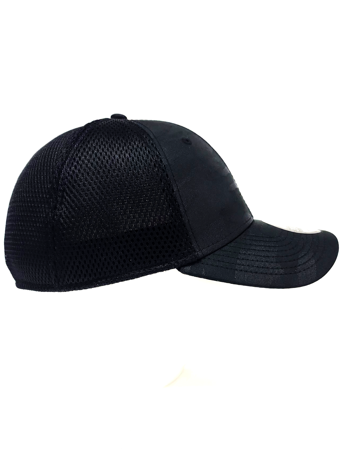 - 100% polyester tonal camo front panels and bill; 100% polyester Spacer Mesh mid and back panels